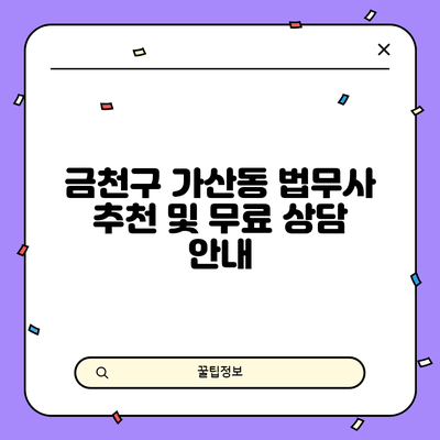 A3: 금천구 가산동에서는 대한법률구조공단, 지역 변호사회 및 법무사회, 마을 변호사 및 법무사를 통해 무료 상담을 신청할 수 있습니다.