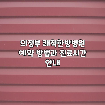 의정부 쾌척한방병원 예약 방법과 진료시간 안내